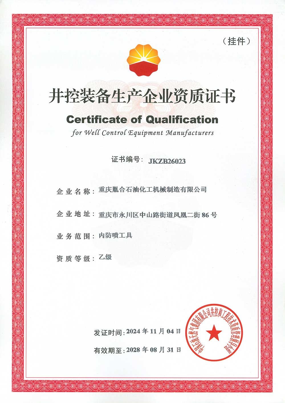 重慶胤合石油化工機械制造有限公司是一家專業從事石油天然氣鉆采設備及配件研發、制造、銷售及服務于一體的企業。公司注冊資金 3000 萬,先后通過ISO9001、ISO14001、ISO18001、ISO45001、 OHSAS18001質量管理三體系認證,HSE健康、安全、環境體系認證。通過了 API Spec 7-1規范認證及中石油井控生產企業資質認證,并獲得證書。